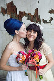 Take a scroll through Pinterest and you'll see a lot of the same wedding hairstyles: subdued curls, sophisticated chignons, and page after page of baby's breath. Now, this may work for a bevy of classic brides, but some ladies about to walk down the aisle are looking for something with a bit more spunk. Behold: our collection of edgy, unexpected, and totally sweet hairstyles - and not a French twist in sight.